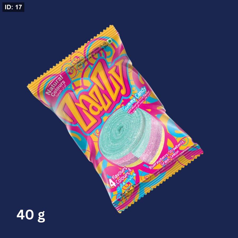 Zazzy 4 Colours 4 Flavours Licorice Roll: A 3-foot chewy treat with strawberry, blue raspberry, lemon, and grape! Gelatin-free, fun, fruity, and full of flavor in every bite!